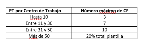 Limita el número máximo de contratos de trabajo formativos (CF) que puedan estar vigentes, al mismo tiempo, en cada centro de trabajo de una misma empresa, que deberá, en cada caso, ajustarse a las capacidades reales de cada una, de forma que se garanticen los derechos formativos de las personas trabajadoras (PT), sin que puedan superarse los siguientes límites: